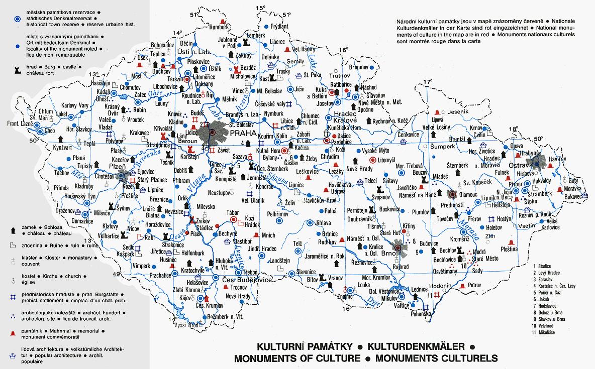 Чехия карте памятники